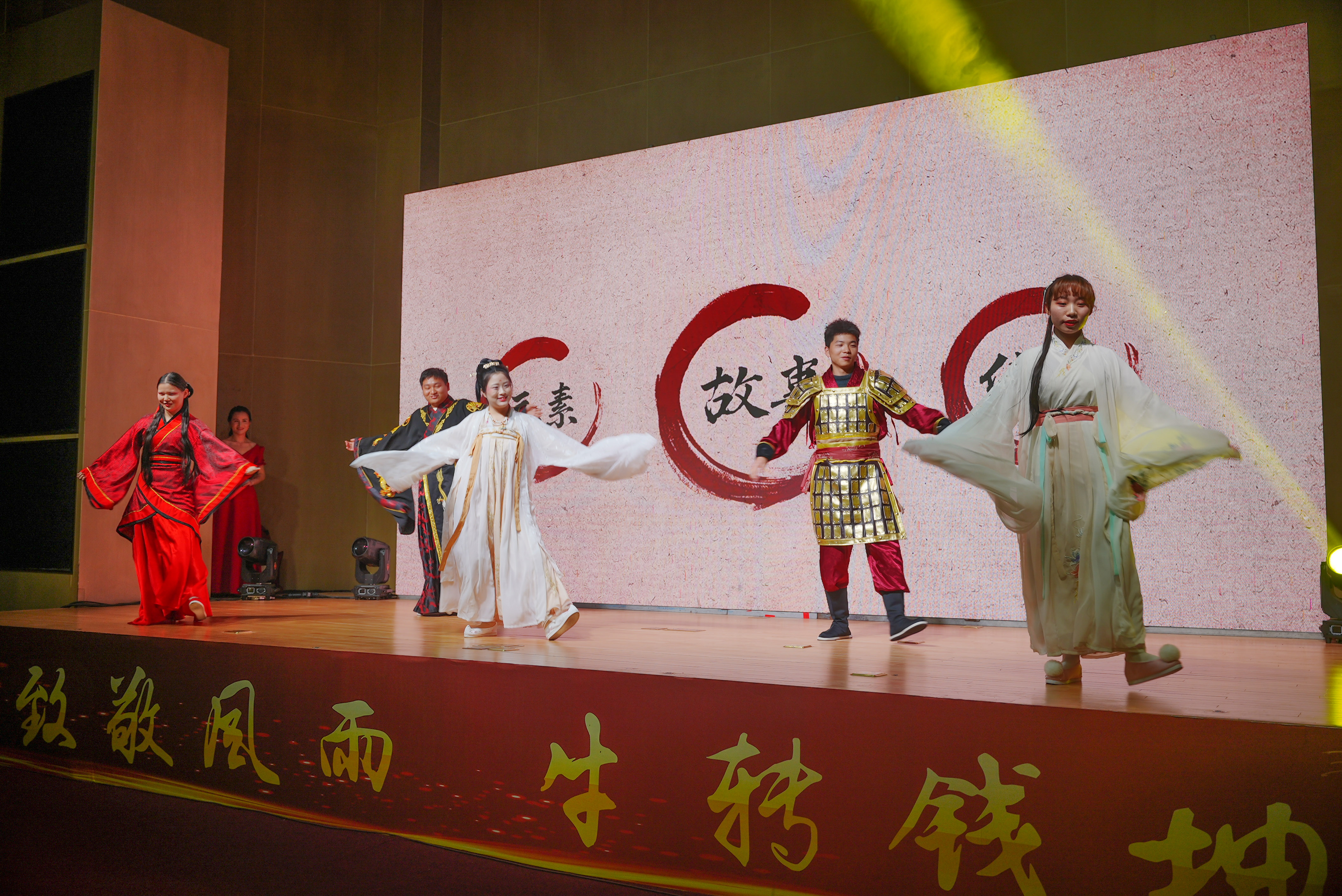 华丽繁复的汉服,配上职能部门的俊男靓女。汉服秀一登场便让人眼前一亮。
